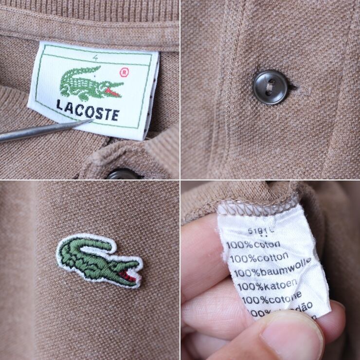 80s 90s フランス企画 フレンチラコステ Lacoste 長袖 ポロシャツ ライトブラウン メンズSM相当 ワンポイント ヨーロッパ古着 071322ss54