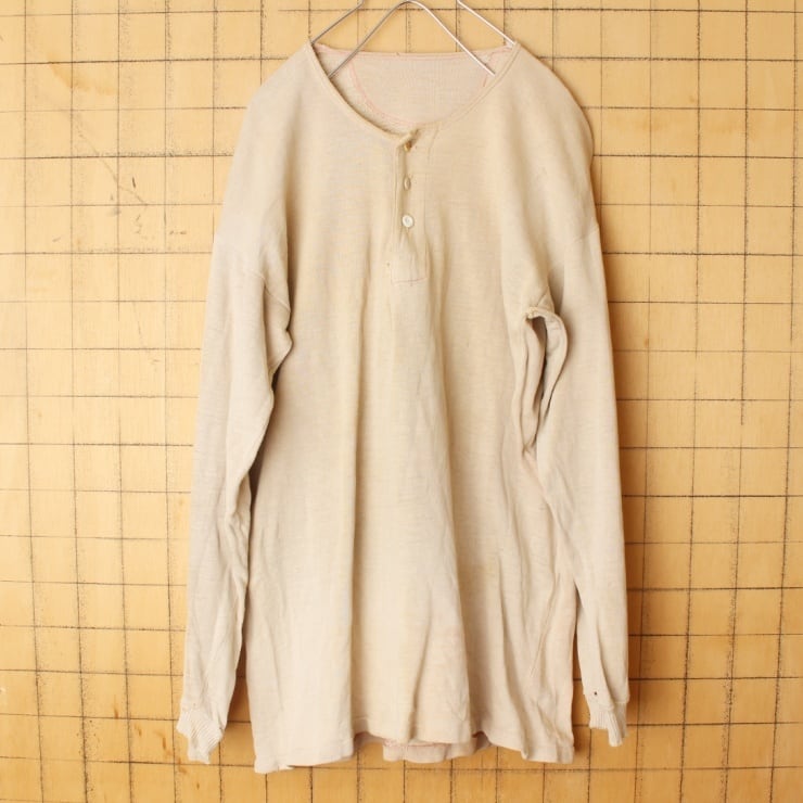 50s 60s EURO ヘンリーネック スウェット アンダーシャツ ベージュ メンズSM相当 ヴィンテージ トレーナー ヨーロッパ古着 051122ss2
