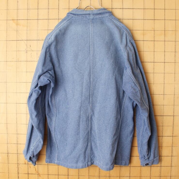 60s 70s スイス ワーク デニム ジャケット カバーオール メンズML相当 ネイビー ブルー ユーロ ヨーロッパ古着 071322ss2