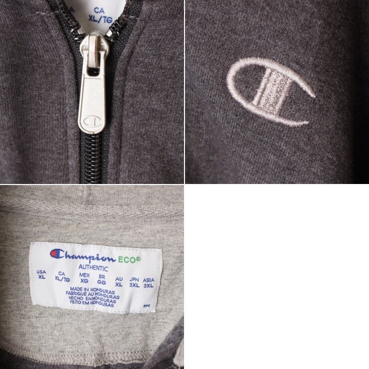 ビッグサイズ USA champion チャンピオン ワンポイント ジップアップ スウェットパーカー ダークグレー メンズ3XL フーディー アメリカ古着 071322ss75
