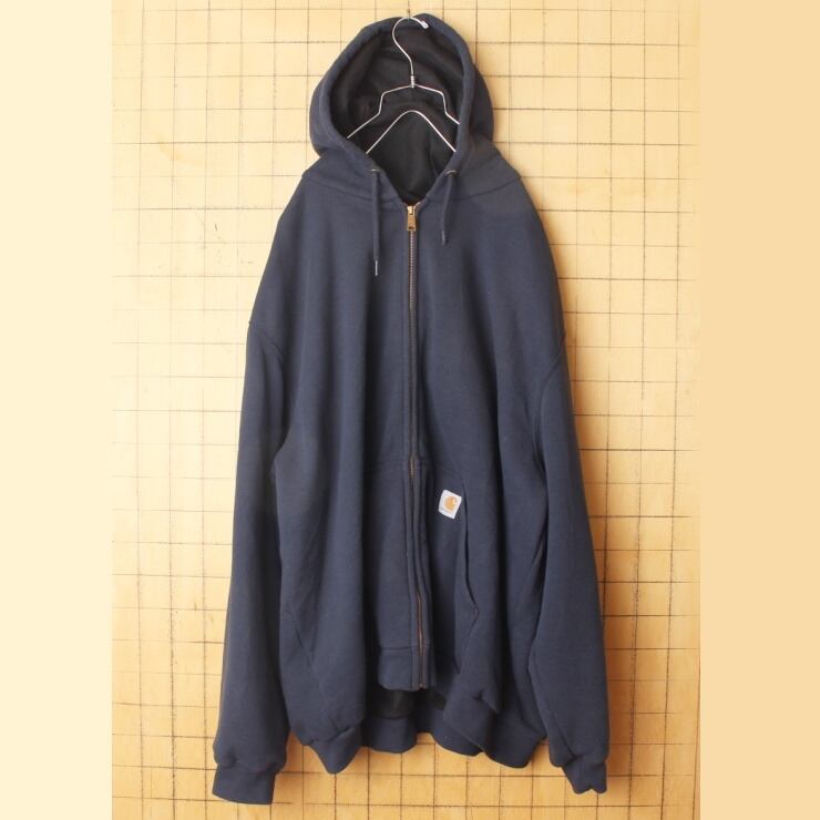 ビッグサイズ USA carhartt カーハート ジップアップ スウェットパーカー ネイビー メンズ3XL 裏メッシュ フーディー アメリカ古着 071322ss30