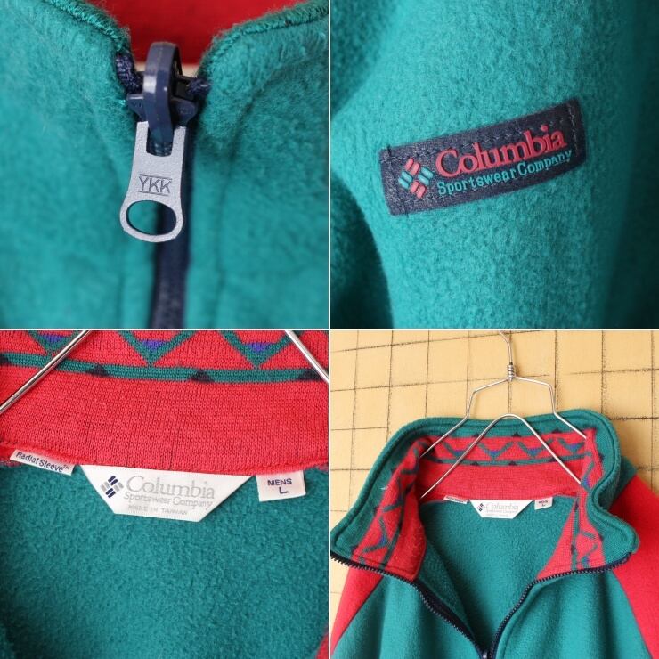 80s 90s Columbia コロンビア フリース ジップアップ ジャケット グリーン メンズL アウトドア アメリカ古着 071322ss19