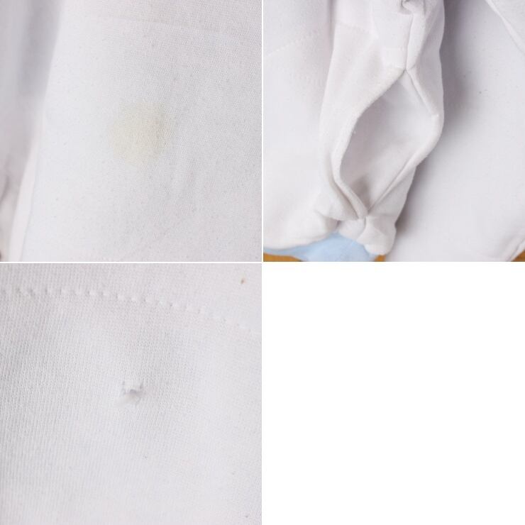 ホワイト側のフロントに薄くシミ、背面にほつれがあります。