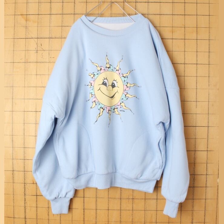 80s 90s USA Seattle Blues リバーシブル プリント スウェット ライトブルー メンズM 中綿 アメリカ古着 091022aw63