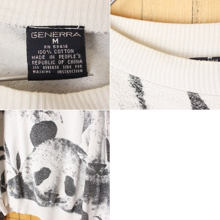 80s 90s GENERRA パンダ プリント スウェット オフホワイト メンズM アメリカ古着です。