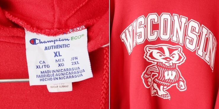 USA champion チャンピオン WISCONSIN プリント スウェットパーカー レッド メンズXL フーディー アメリカ古着 091022aw82