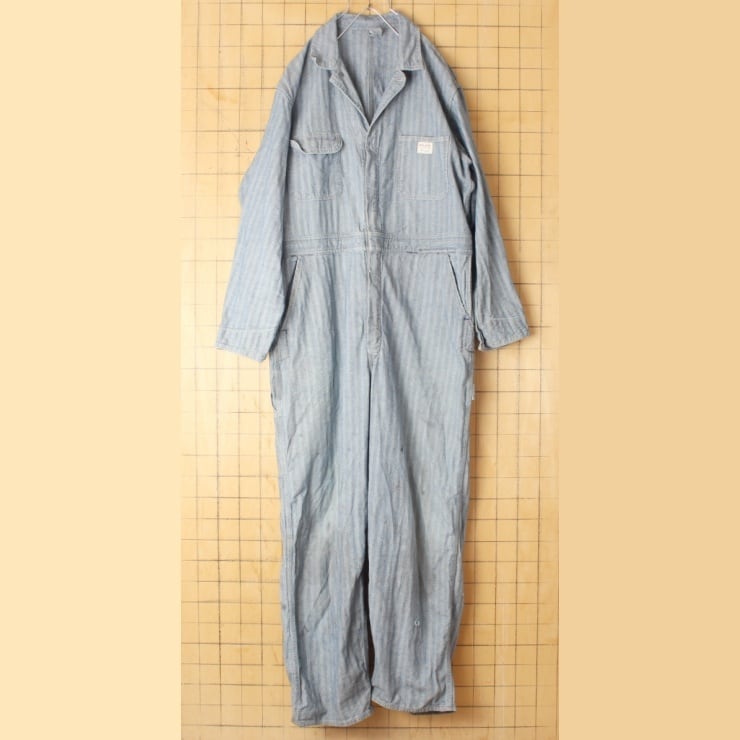 60s USA製 Penneys BIGMAC ビッグマック ヘリンボーンツイル ワーク オールインワン つなぎ W44 ブルー ペインター アメリカ古着 091022aw21