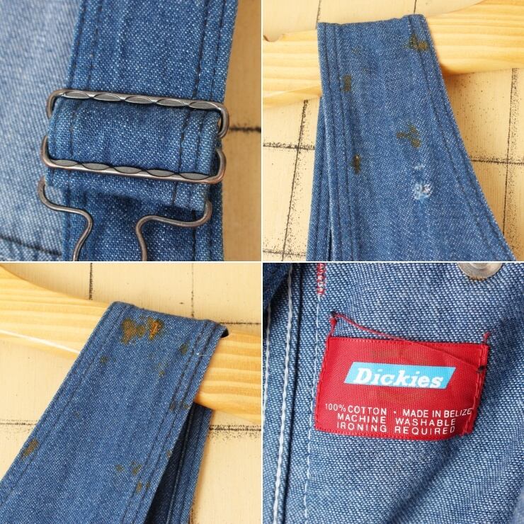 60s USA Dickies ディッキーズ デニム オーバーオール W38相当 ボタンフライ ブルー プリント赤タグ アメリカ古着 091022aw6