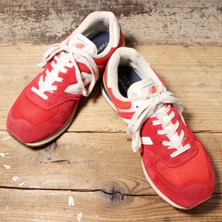 new balance classic 574 スニーカー シューズ スウェード ローカット 27cm レッド 赤 古着です。