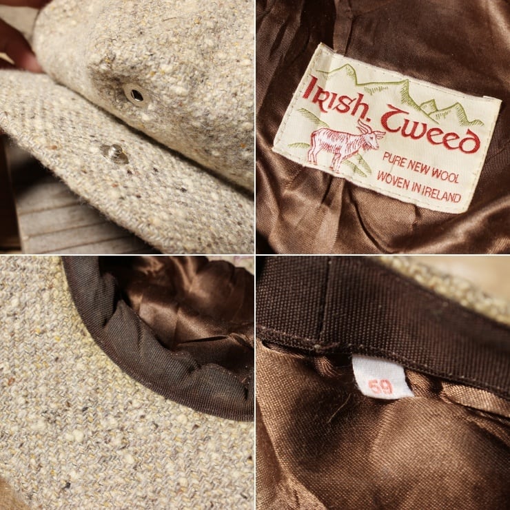 アイルランド製 IRISH Tweed ウール キャスケット キャップ 帽子 ベージュ メンズ レディース ハンチング EURO ヨーロッパ古着 110222aw193
