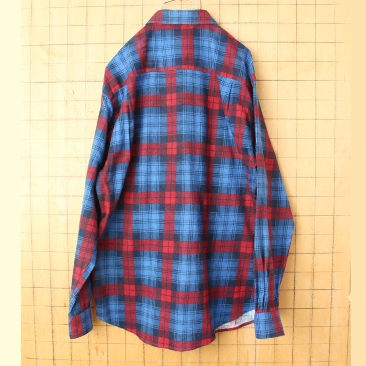 70s 80s EURO コットン プリントチェック シャツ 長袖 ブルー レッド メンズL ヨーロッパ古着 110222aw4