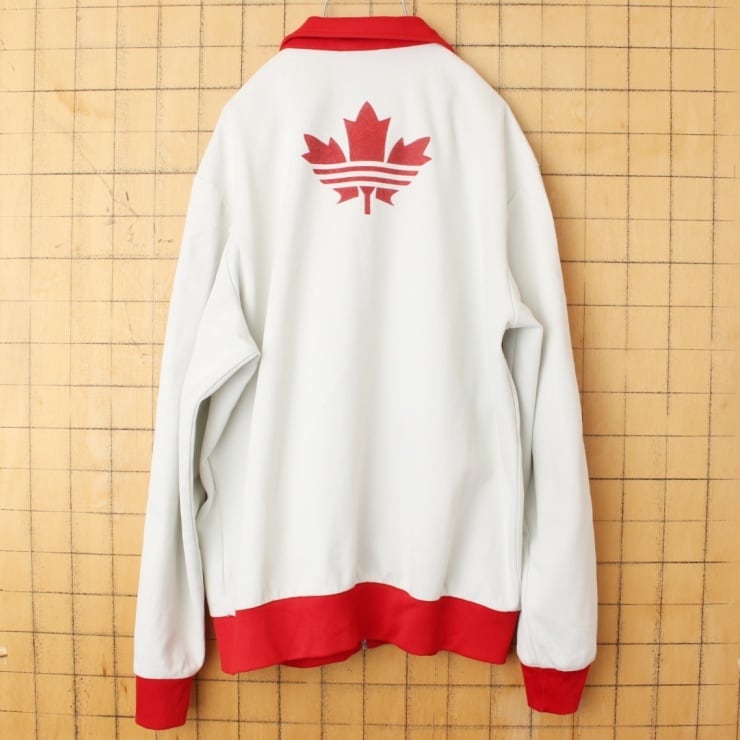 CANADA adidas アディダス MATERIALS OF THE WORLD トレフォイルロゴ 刺繍 ジャージ トップ オフホワイト メンズL ジップアップ アメリカ古着です。