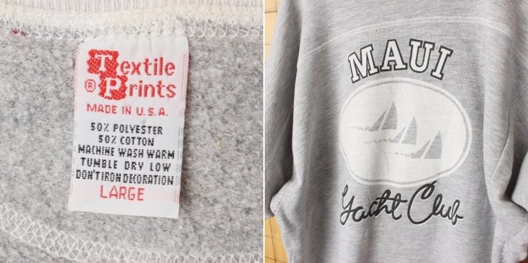 80s 90s USA製 Textile Prints 半袖 プリント スウェット グレー メンズL MAUI Yacht Club アメリカ古着です。
