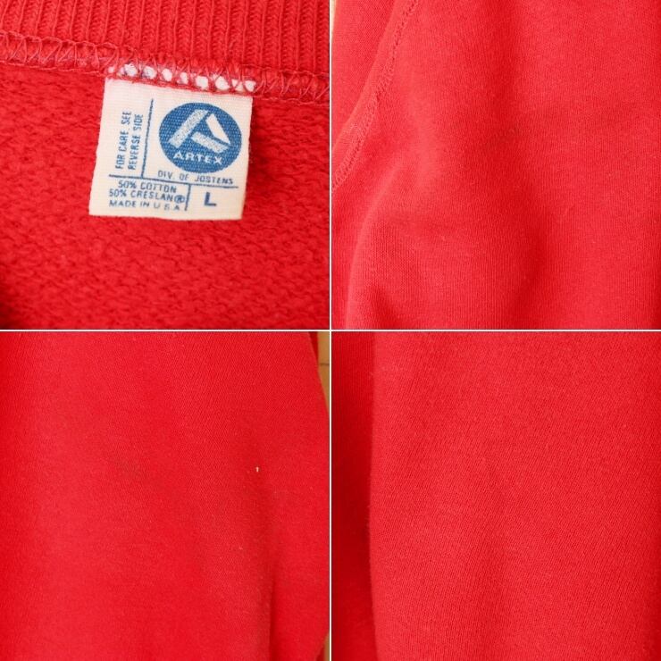80s 90s USA製 ARTEX ALASKA プリント ラグラン スウェット レッド メンズL アメリカ古着 110222aw35