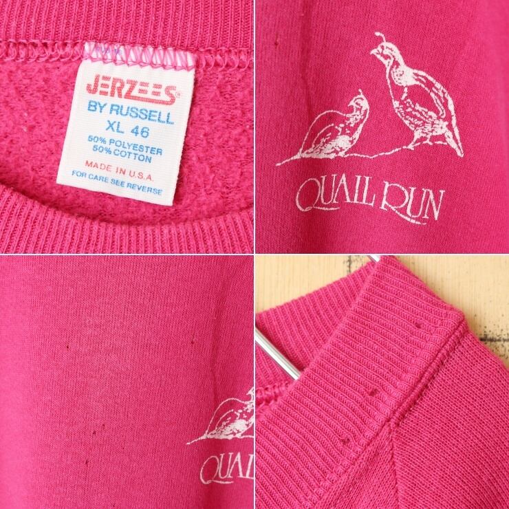 80s 90s USA製 JERZEES QUAIL RUN プリント ラグラン スウェット ピンク メンズXL アメリカ古着 110222aw36