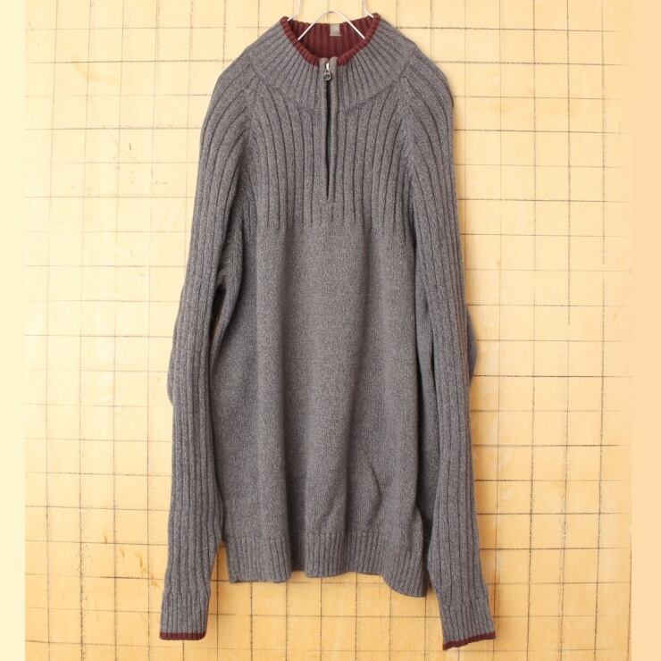 USA columbia コロンビア ハーフジップ コットン ニット セーター グレー メンズL ハイネック アウトドア アメリカ古着 110222aw56