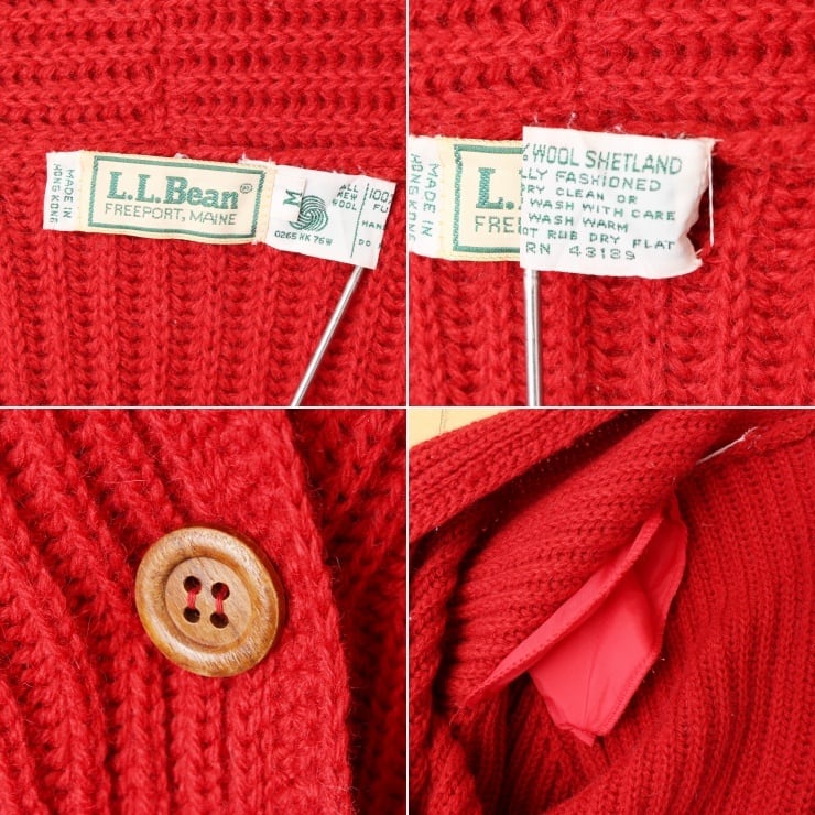 80s 90s USA LLBean エルエルビーン シェットランド ウール ニット カーディガン レッド レディースM アメリカ古着 110222aw77