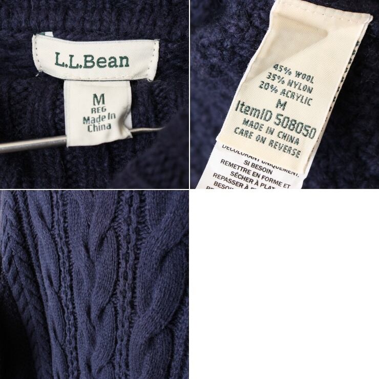 USA LLBean エルエルビーン ウール ケーブルニット タートルネック セーター ネイビー レディースM メンズSM相当 アメリカ古着 110222aw61