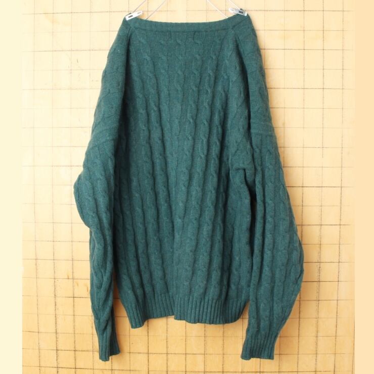 80s 90s USA Eddie Bauer エディーバウアー ケーブル編み ラムウール ニット Vネック セーター グリーン メンズXL アメリカ古着 110222aw63