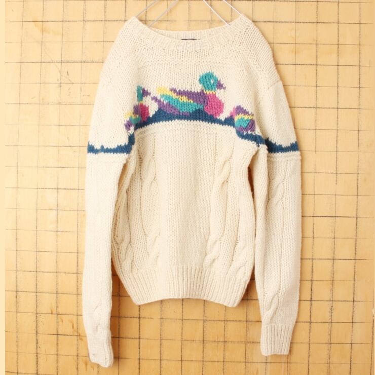 70s 80s USA Woolrich ウールリッチ ウール ニット クルーネック セーター カモ オフホワイト レディースM アメリカ古着 110222aw68