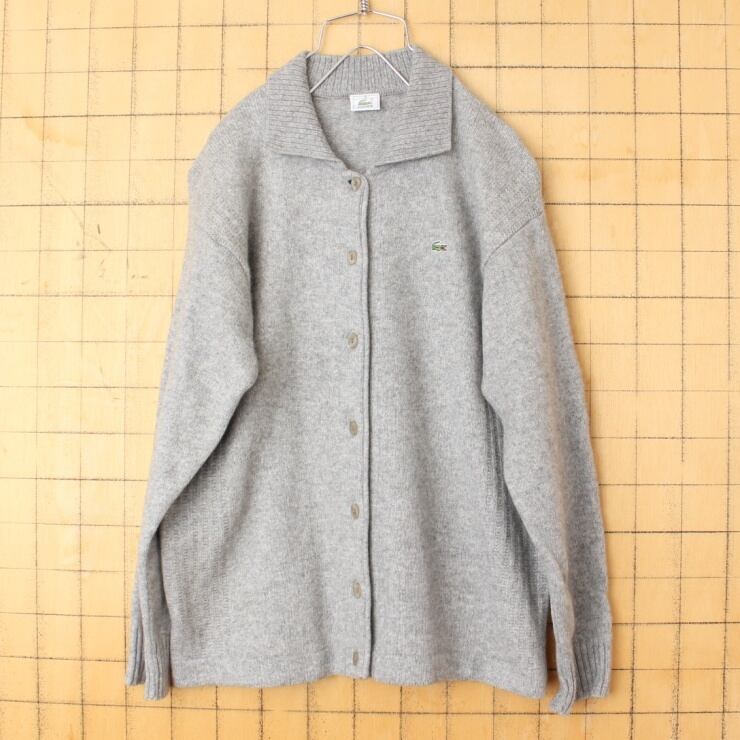 90s フレンチ ラコステ LACOSTE ウール ニット カーディガン グレー レディースM相当 ヨーロッパ古着 110222aw79