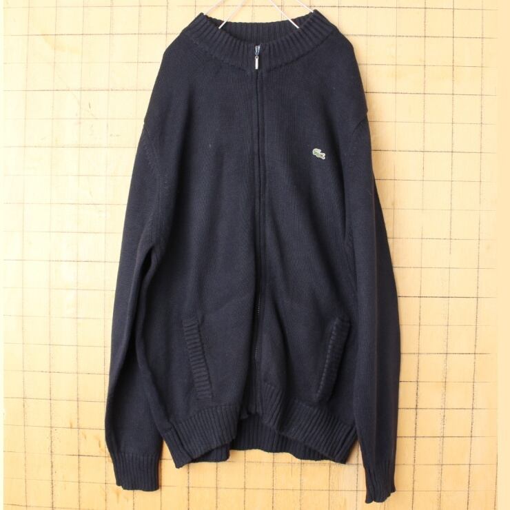 90s フレンチ ラコステ LACOSTE コットン ニット ジップアップ カーディガン ネイビー メンズL相当 ヨーロッパ古着です。
