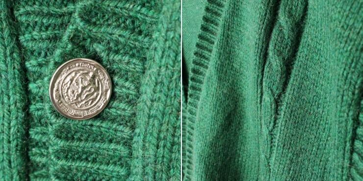 70s 80s EURO ケーブル編み ウール ニット 前開き ベスト グリーンメンズL相当 ヨーロッパ古着です。
