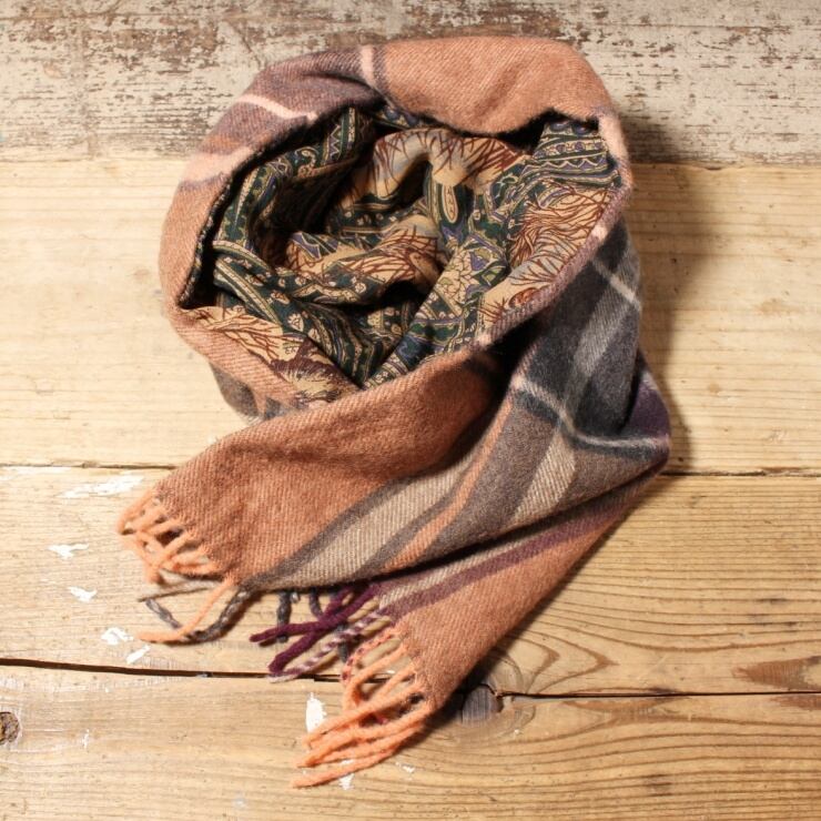 EURO ウール マフラー チェック カモ柄 ブラウン リバーシブル ユーロ ヨーロッパ古着 110222aw182