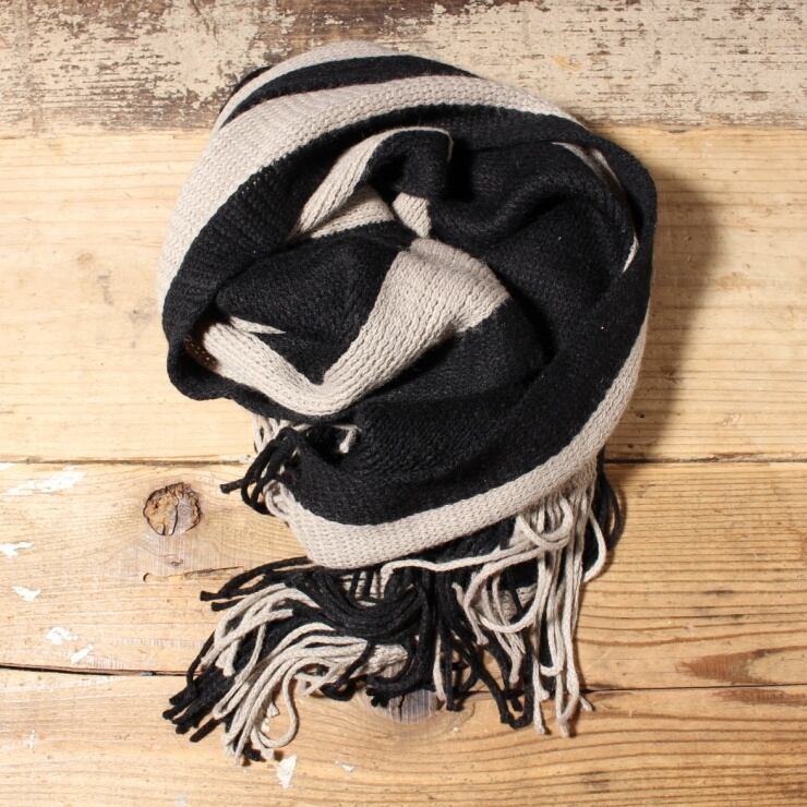 EURO アクリル マフラー ブラック ストライプ ユーロ ヨーロッパ古着 110222aw183