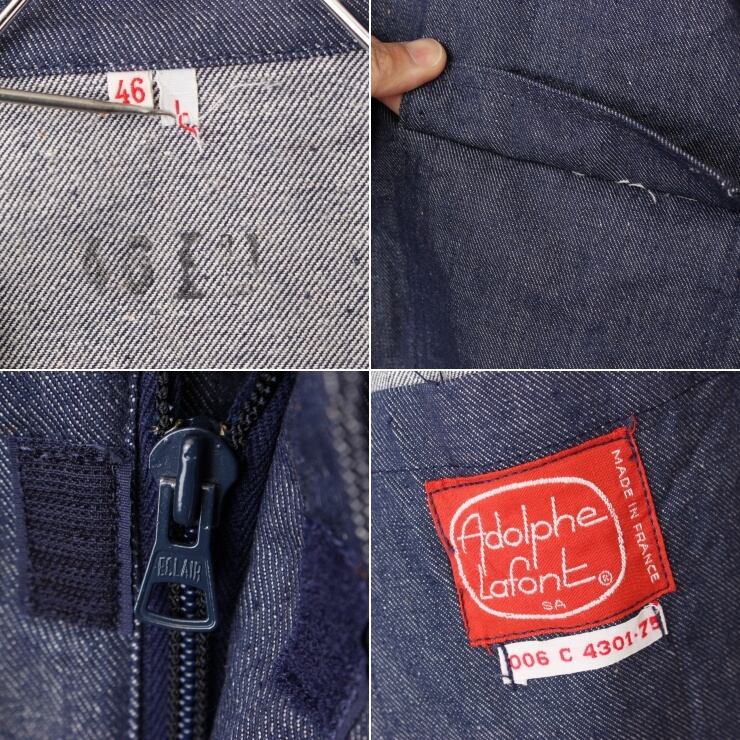 60s 70s フランス製 Adolphe Lafont デニム ジップアップ ワーク ジャケット カバーオール メンズL ネイビー ブルー ヨーロッパ古着です。
