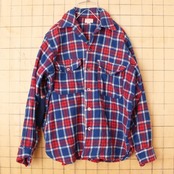 50s 60s USA CASCADE ウール チェック シャツ マチ付き 長袖 ブルー レッド メンズM相当 アメリカ古着 010523aw78