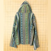 80s 90s メキシカンパーカー プルオーバー ジャケット ライトグリーン メンズML相当 総柄 ストライプ 古着 010523aw74