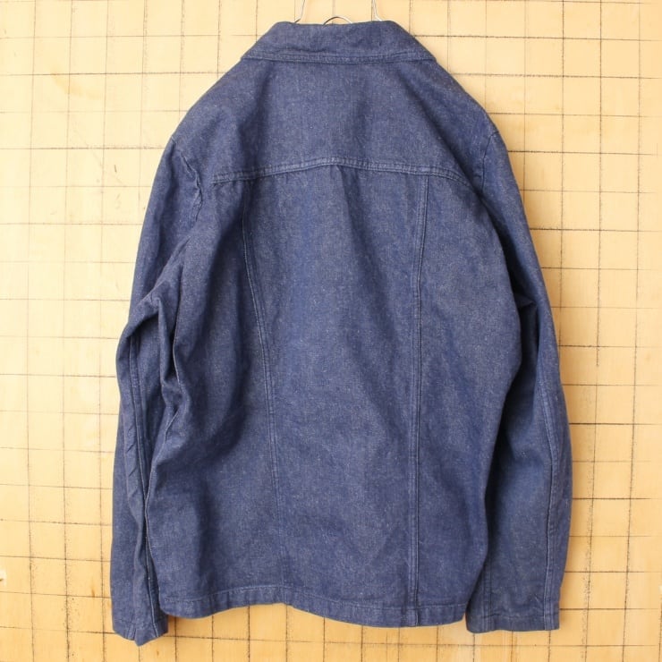 70s フランス製 デニム ジップアップ ワーク ジャケット カバーオール メンズM ネイビー ブルー ヨーロッパ古着 010523aw96