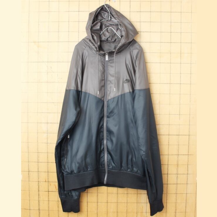 USA NIKE ナイキ WINDRUNNER ナイロン ジャケット パーカー 刺繍 グレー ブラック メンズXL フード アメリカ古着 010523aw9
