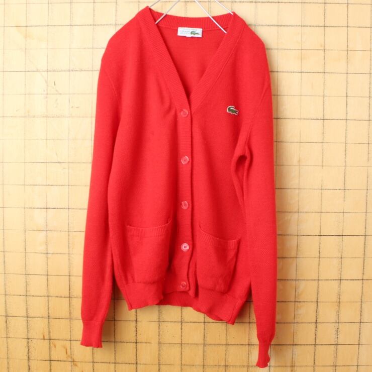 70s 80s フランス製 フレンチ ラコステ LACOSTE ウール ニット カーディガン レッド レディースSM相当 ヨーロッパ古着 022523ss21