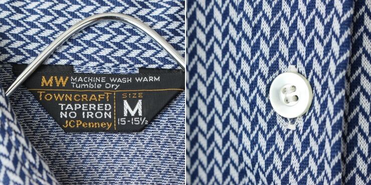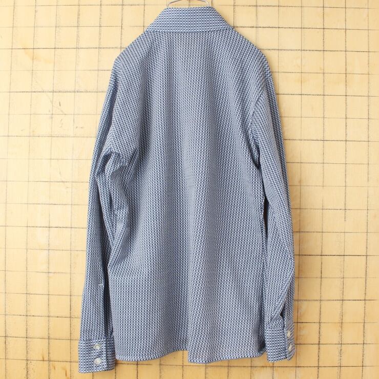 70s 80s USA JCPenney 総柄 ポリ シャツ ネイビー メンズM 長袖 アメリカ古着 041223ss61