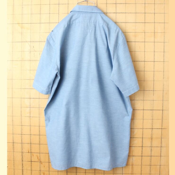 80s 90s USA製 Dickies ディッキーズ シャンブレー ワーク シャツ ライトブルー メンズM 半袖 アメリカ古着 022523ss57