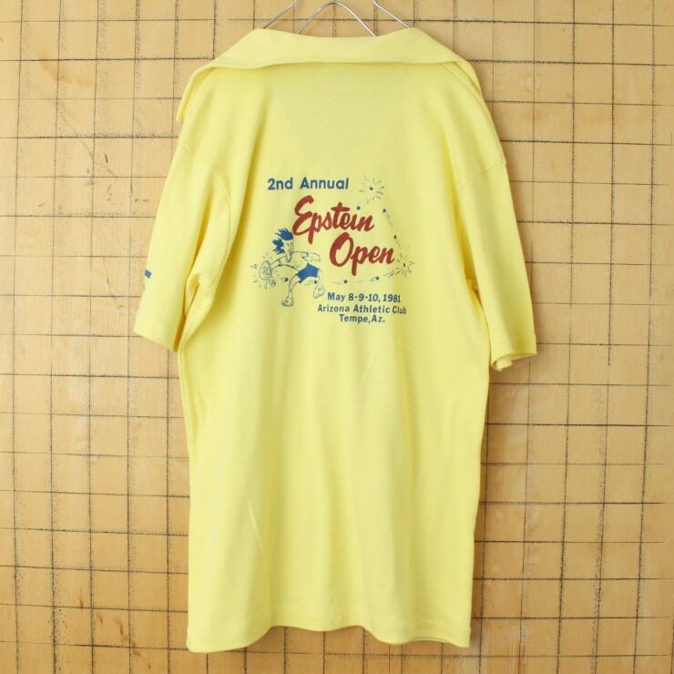 80s USA製 DIAMOND HEAD TEE'S 半袖 両面 プリント ポロシャツ イエロー メンズXL アメリカ古着 041223ss25