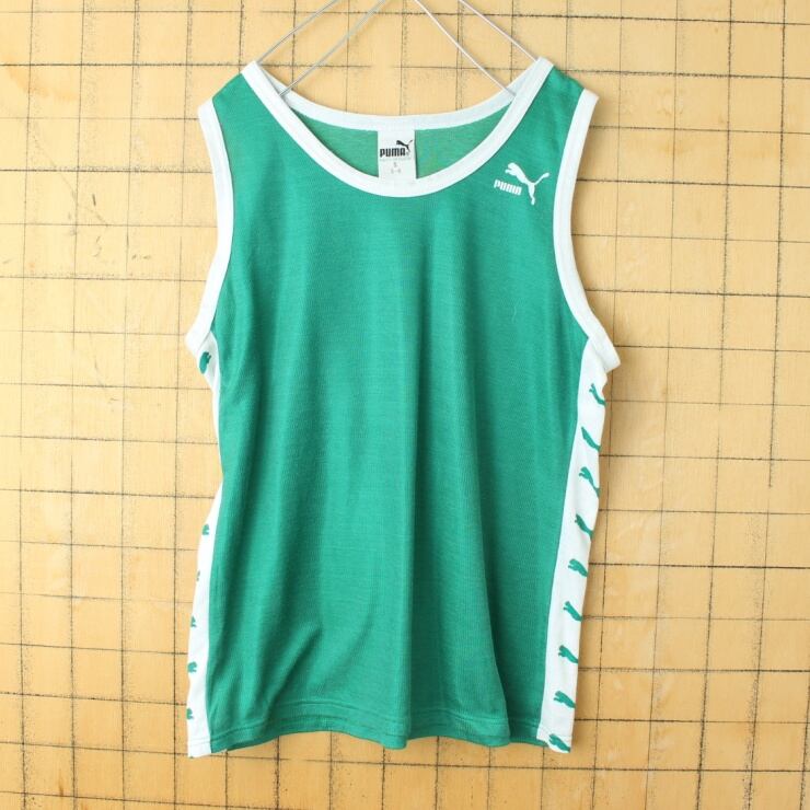 70s 80s 西ドイツ製 PUMA プーマ タンクトップ グリーン メンズS レディースM相当 ヨーロッパ古着 060723ss1