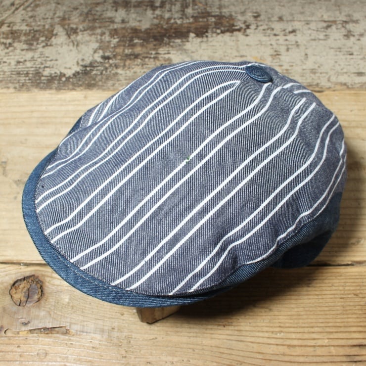 イタリア製 ストライプ デニム ハンチング 帽子 ネイビー ブルー Mサイズ ヨーロッパ古着です。