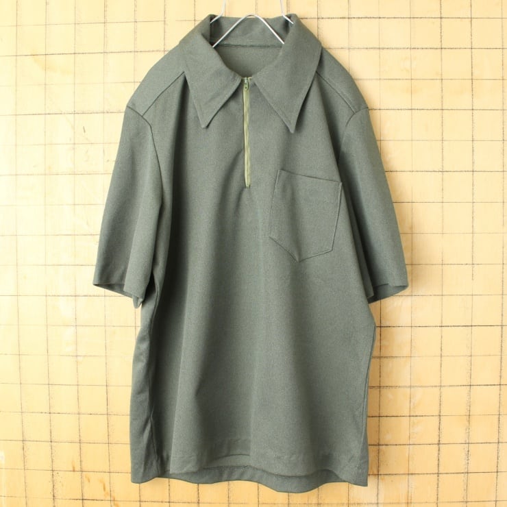 60s 70s USA ハーフジップ ポロ シャツ メンズML相当 カーキ グリーン 半袖 ポリエステル アメリカ古着 080923aw154