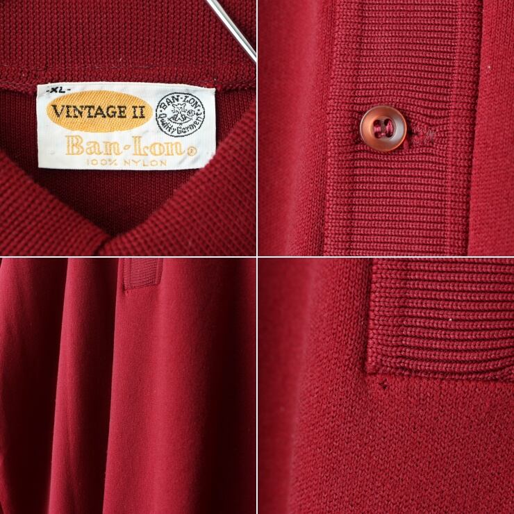 60s 70s USA製 Ban-Lon バンロン ポロシャツ メンズXL ボルドー レッド 半袖 ナイロン アメリカ古着 080923aw188