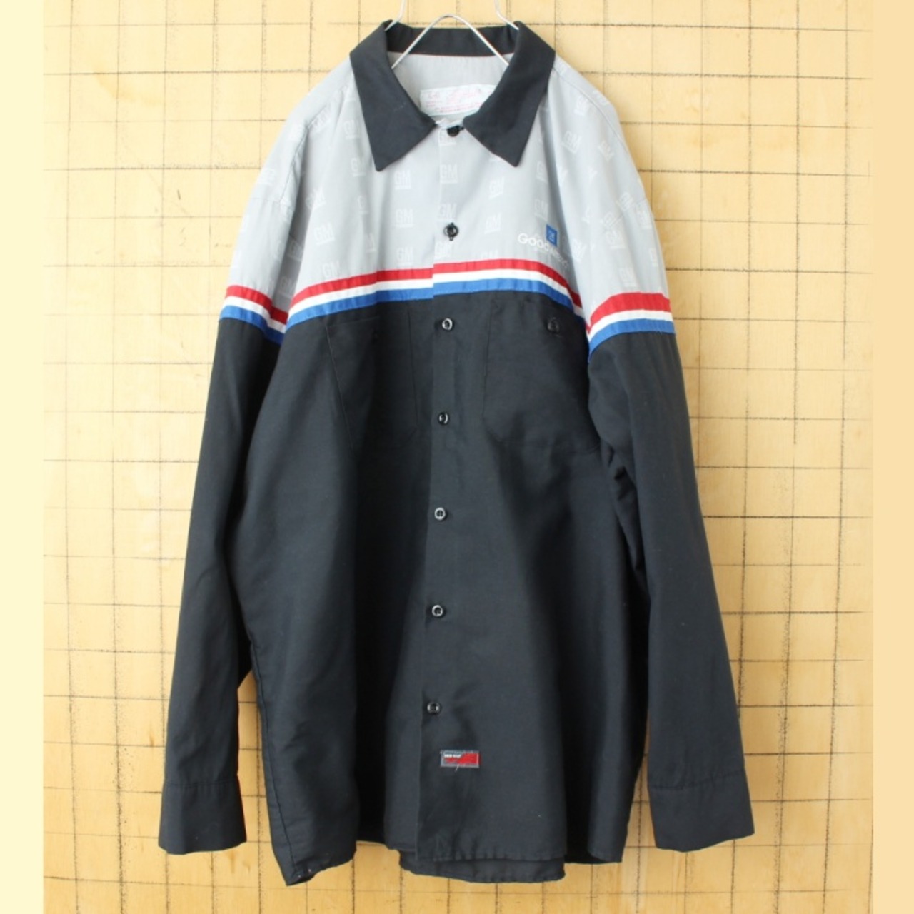 ビッグサイズ 80s 90s USA RED KAP レッドキャップ GM Goodwrench ワーク シャツ ブラック グレー メンズXL 長袖 アメリカ古着 080923aw129