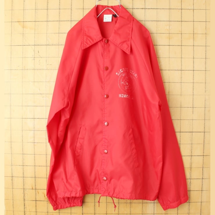 70s 80s USA製 SACRED HEART FIGHTING CARDINALS プリント ナイロン コーチ ジャケット レッド メンズM アウトドア アメリカ古着 080923aw216