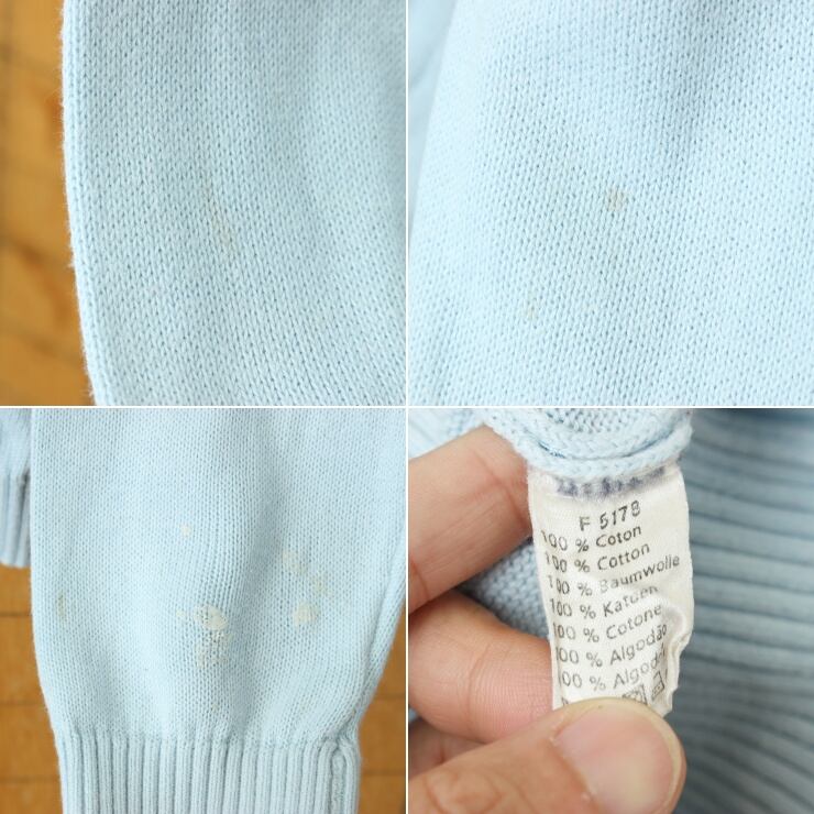 フレンチ ラコステ LACOSTE コットン ニット セーター クルーネック ライトブルー メンズML相当 ヨーロッパ古着 080923aw47