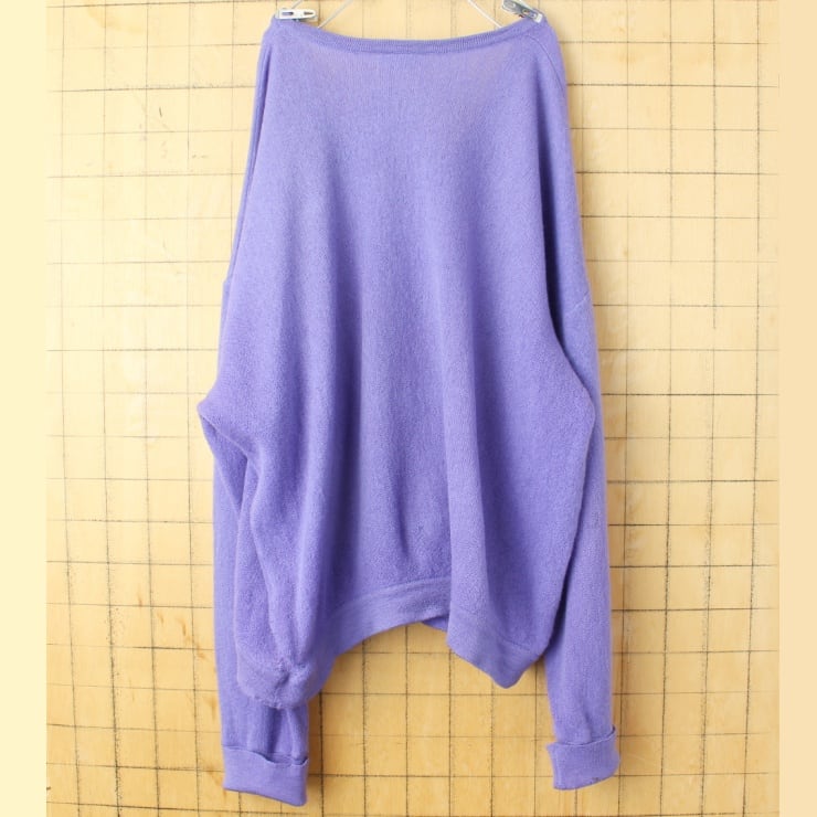70s 80s フランス製 フレンチ ラコステ LACOSTE ウール ニット セーター Vネック パープル メンズXL相当 ヨーロッパ古着 080923aw49