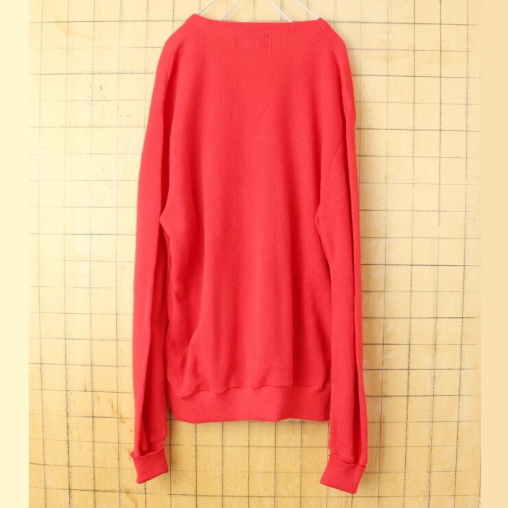 80s USA製 Jantzen レタード セーター Vネック レッド メンズL ワッペン ニット アメリカ古着 080923aw201