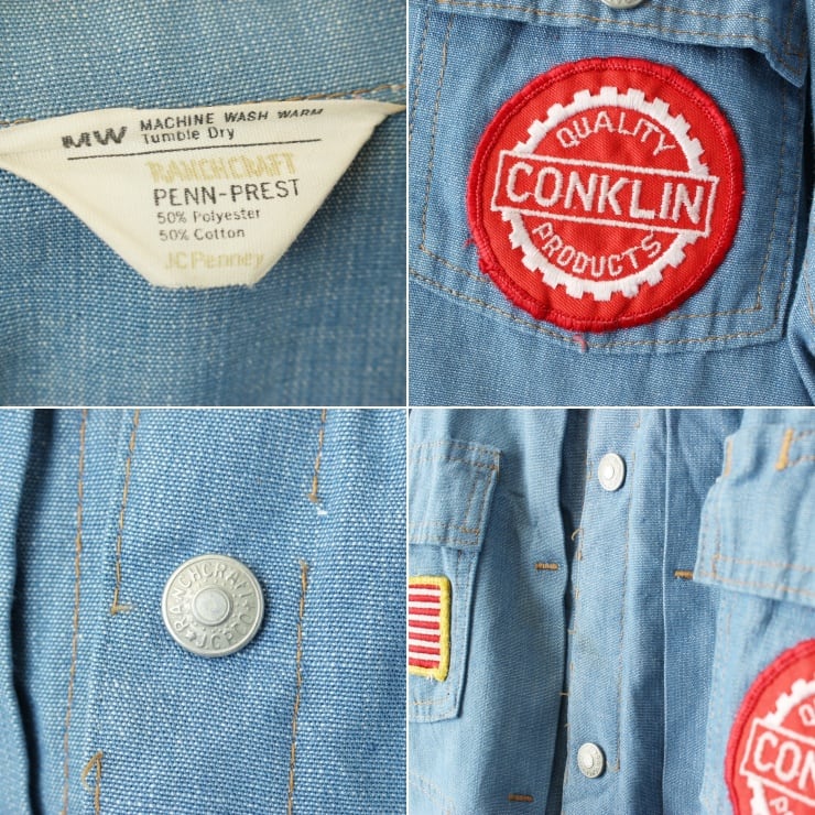 70s 80s USA JCPenney RANCHCRAFT デニム ワーク ジャケット メンズM相当 ブルー CONKLIN QUALITY PRODUCTS アメリカ古着です。