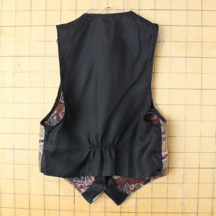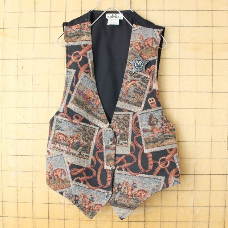 70s 80s USA製 L.A.CENTRAL 馬柄 ウエスタン ベスト メンズM ブラック アウトドア アメリカ古着 090723aw88