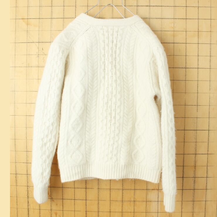 EURO Fanucci ウールニット ケーブル編み フィッシャーマン カーディガン オフホワイト レディースXL メンズM相当 ヨーロッパ古着 112923aw40